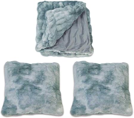 Meubletmoi Lot Plaid 2 Coussins Nuances De Bleu Gris Vert Au